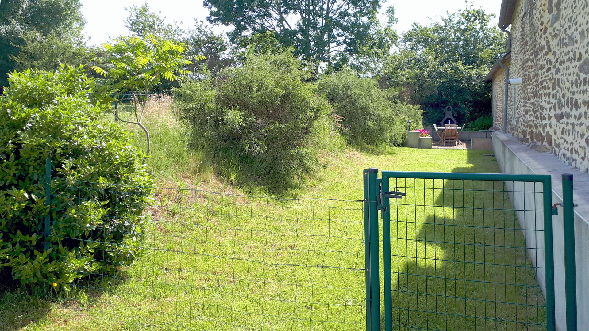 The banks are full of herbs you can use for cooking. The whole area has a secure wire fence along the top of the banks and the long flat lawn behind the house, off the patio, has a gate and fence at the far end so forms a fully enclosed terrace area where children should be relatively safe to play.