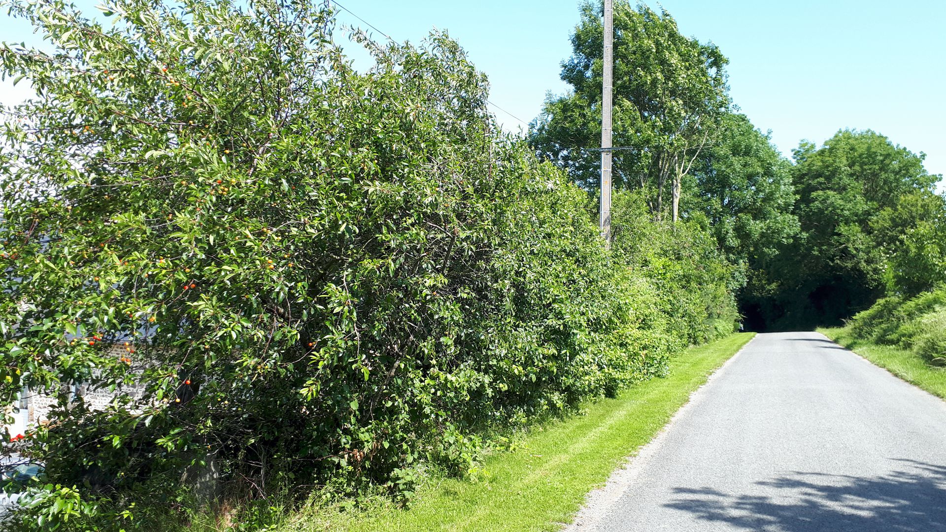 The house is half way between the villages of Saint-Thomas-de Courceriers and Izé, each 3 km away. These are connected by the country lane outside, with only sparse local traffic and is perfectly safe to walk along. As this is a farming area there will of course be occasional tractors and other farm equipment but you can go for hours without any noticeable traffic at all.